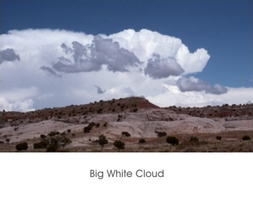 Photographs were made during hiking and camping trips taken in the summer months, especially when monsoon clouds and rain filled the vast Southwestern sky in a daily cyclical pattern - abstract skies. They served as inspiration for my paintings as well as offered specific imagery with which to compose complete works of art.